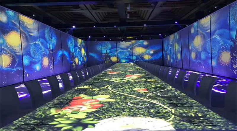 當(dāng)前全息5d光影餐廳在國內(nèi)外各大城市均有應(yīng)用, 多媒體投影技術(shù)與美食、空間的融合,打造一場(chǎng)視聽盛宴。如果您對(duì)此感興趣,歡迎和小編探討交流。