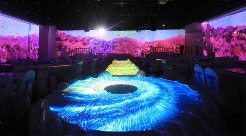 全息光影婚禮宴會廳投影有哪些特別之處?和傳統(tǒng)宴會廳相比,全息光影婚禮宴會廳基于前沿3D影像技術(shù)和裸眼3d視覺,打造虛擬現(xiàn)實空間。賓客進入宴會廳現(xiàn)場,墻面、地面、桌面、空中投影打造的數(shù)字主題場景交輝相映,森林、海灘、星空、花海等主題視覺隨著腳步的移動產(chǎn)生變化,趣味性十足。