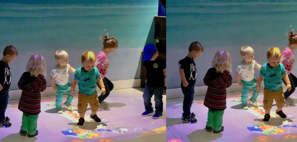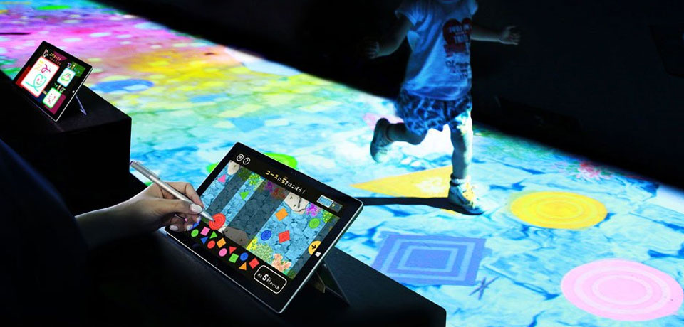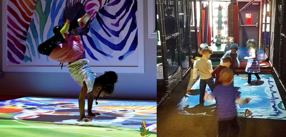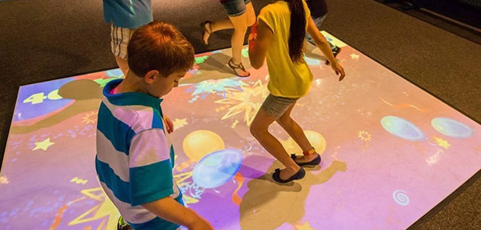 孩子通過(guò)身體動(dòng)作來(lái)與地面的圖像進(jìn)行互動(dòng),從用戶的觸覺(jué)和視覺(jué)方面使用戶感覺(jué)到一種更加魔幻真實(shí)的互動(dòng)體驗(yàn),提高了互動(dòng)的體驗(yàn)感受,帶來(lái)的更強(qiáng)的沉浸感。