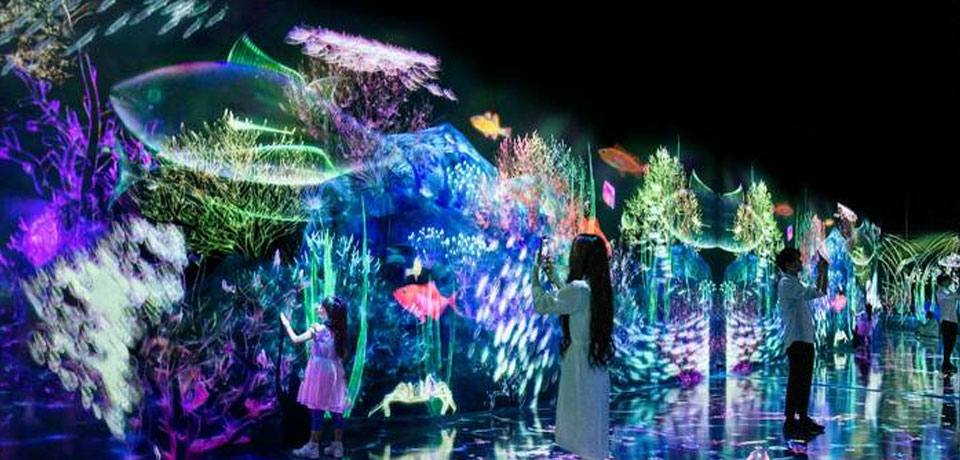 電腦編程、傳感器、投影、燈光、互動動畫、音樂效果和玻璃組成的奇妙空間。專注于數(shù)字互動藝術(shù)領(lǐng)域,根據(jù)場景需求,利用全息投影技術(shù)結(jié)合數(shù)字內(nèi)容,實現(xiàn)特色創(chuàng)意,打造唯美的沉浸式體驗空間。