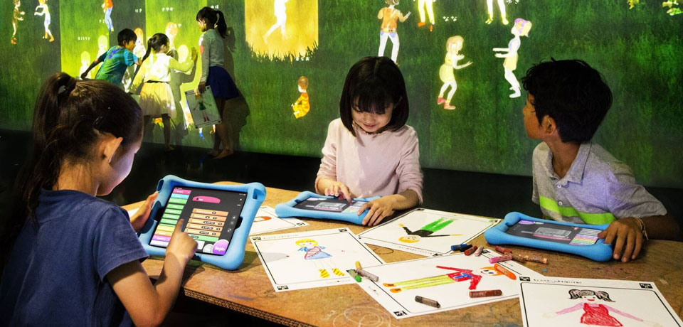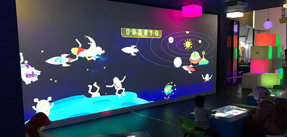 孩子們使用涂色卡上色,完成繪畫作品后,通過掃描儀識別、觸摸屏甩屏后,孩子們創(chuàng)作的繪畫作品可以出現(xiàn)在墻面的投影屏幕中,小朋友們會驚喜的發(fā)現(xiàn)自己的繪畫作品變活了,同時(shí)小朋友們跟自己繪畫的內(nèi)容進(jìn)行有趣的互動,互動性鍛煉了孩子的社交及創(chuàng)造能力!