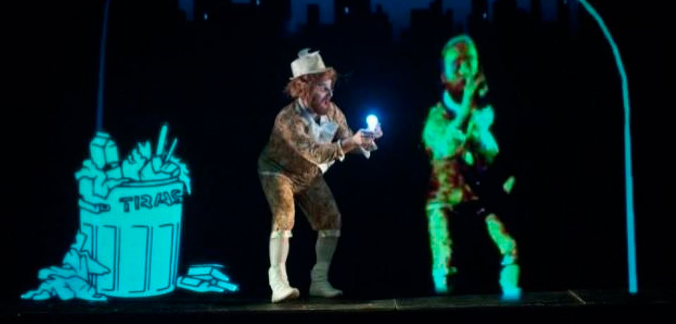 “幻影成像”---視像技術(shù),視覺(jué)效果強(qiáng)烈、影像三維立體感強(qiáng),具有強(qiáng)烈的縱深感,成像方式新穎。懸浮在空中的影像有時(shí)近在眼前,給人以伸手可及的感覺(jué);有時(shí)又會(huì)將人的視覺(jué)帶到遙遠(yuǎn)的星空,忽遠(yuǎn)忽近,忽明忽暗,變幻莫測(cè)。光學(xué)影像實(shí)現(xiàn)舞臺(tái)演員的出現(xiàn)和消失。
