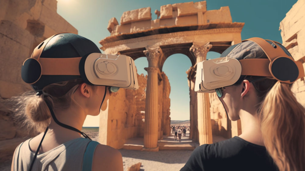 VR旅游是利用虛擬現(xiàn)實(shí)技術(shù),以現(xiàn)實(shí)旅游景觀為基礎(chǔ),構(gòu)建一個(gè)三維立體的景區(qū)環(huán)境,通過VR設(shè)備可觀看世界各地的景點(diǎn),足不出戶即可欣賞美景,瀏覽古跡。