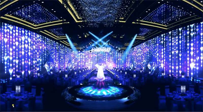 什么叫全息5d光影宴會(huì)廳呢?全息5d光影宴會(huì)廳是為了應(yīng)對婚禮宴會(huì)廳場景固化、裝修固化所誕生的。和傳統(tǒng)宴會(huì)廳不同,全息5d光影宴會(huì)廳簡化了實(shí)物裝飾,采用數(shù)字多媒體的方式,用數(shù)字場景替代實(shí)物裝飾,結(jié)合大量前沿科技,帶來更好的視覺效果,同時(shí)極大的節(jié)省了實(shí)物裝飾所帶來的成本問題!