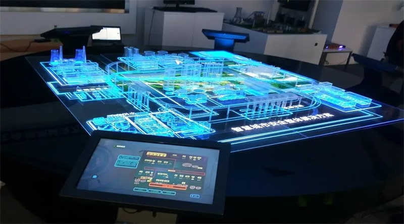 4、互動數(shù)字沙盤:互動數(shù)字沙盤在展示內容及效果方面與其他的沙盤都差不多,但是從名稱上來看也知道它與其他數(shù)字沙盤的不同就在于互動數(shù)字沙盤可以和參觀者進行人機交互,占地面積較小、 展示方式靈活。